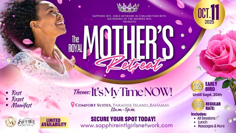 Royal Ladies, join us on Saturday October 11th, 2025 for The Midwife Experience **Birthing Retreat at the beautiful Comfort Suites Hotel, Paradise Island, Bahamas.